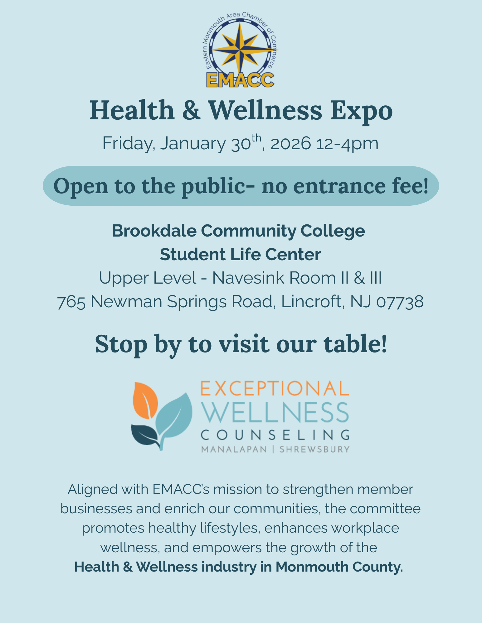 EMACC Health & Wellness Expo – Friday, January 30 from 12:00–3:00 PM